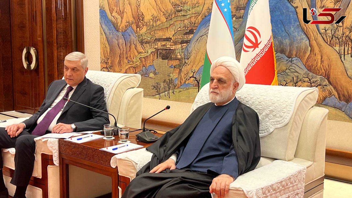 رئیس قوه قضائیه کشورمان در جریان این دیدار، با اشاره به اهمیت همگرایی کشورهای عضو سازمان شانگهای جهت غلبه بر چالشهای منطقهای و جهانی اظهار کرد: دو کشور ایران و ازبکستان با مشترکات فرهنگی و تمدنی بالایی که دارند، ظرفیت توسعه هر چه بیشتر مناسبات و مراودات در حوزههای مختلف از جمله حوزههای اقتصادی، امنیتی، حقوقی و قضائی را دارا هستند. در برخی از این زمینهها توافقنامههایی میان طرفین به امضا رسیده است که ضرورت دارد در جهت عملیاتیتر کردن این امور گامهای موثرتری را برداریم.